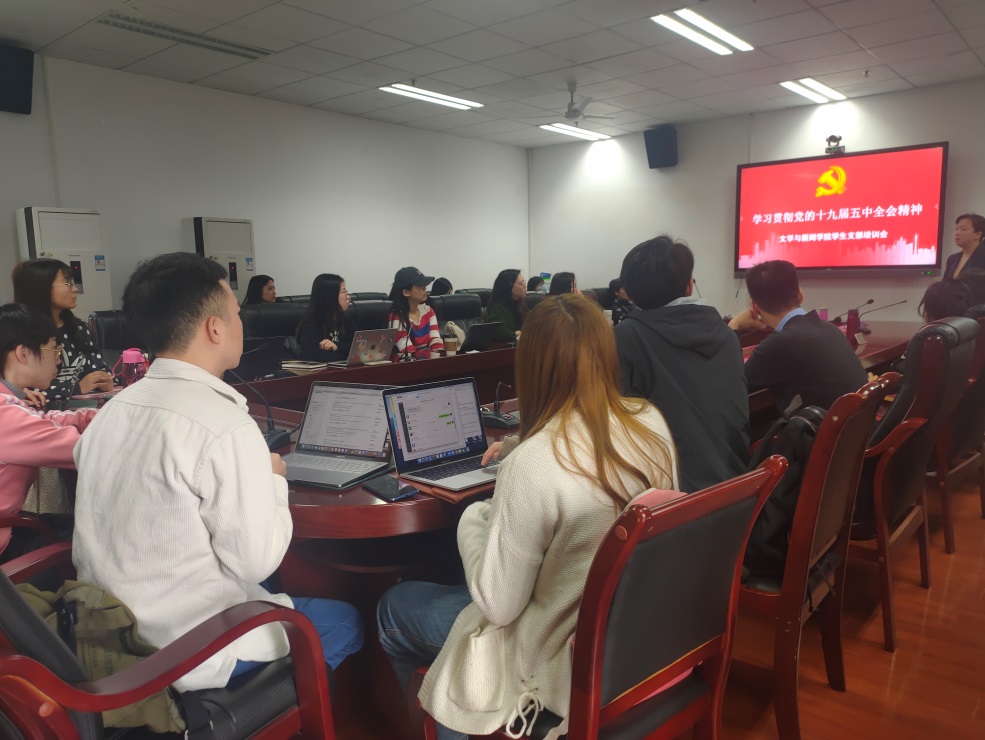 2020年学生党支部书记培训班开班仪式暨“十九届五中全会”精神专题党课学习在文科楼一区418室举行。会议由学院党委副书记兼纪委书记张莹主持,学院党建组织员成春教授主讲。会上,成春教授作了题为“学习贯彻党的十九届五中全会精神”的培训宣讲。成春教授讲解了十九届五中全会的重要性,并围绕主题,就形势背景、工作回顾、会议亮点、公报要点等方面进行了解读。她指出,学生党支部应在十九届五中全会精神的指导下,理论联系实际,加强学习与交流,切实发挥党员先锋模范作用,将会议精神转化为学生党支部的凝聚力与行动力。