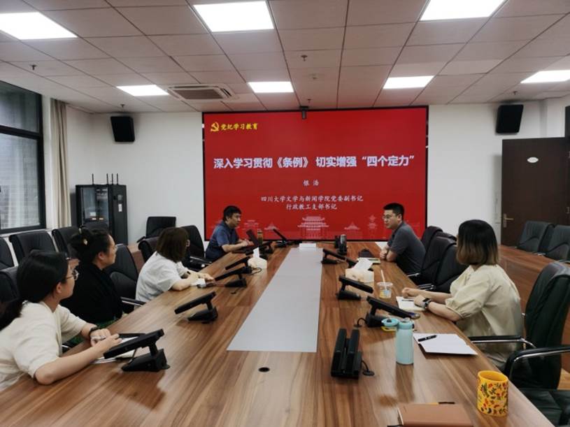 行政教工支部在文科楼一区311会议室召开支部会议,学院党委副书记、行政教工支部书记银浩副研究员以“深入学习贯彻《条例》,切实增强‘四个定力’”为主题,讲授党纪学习教育纪律党课。