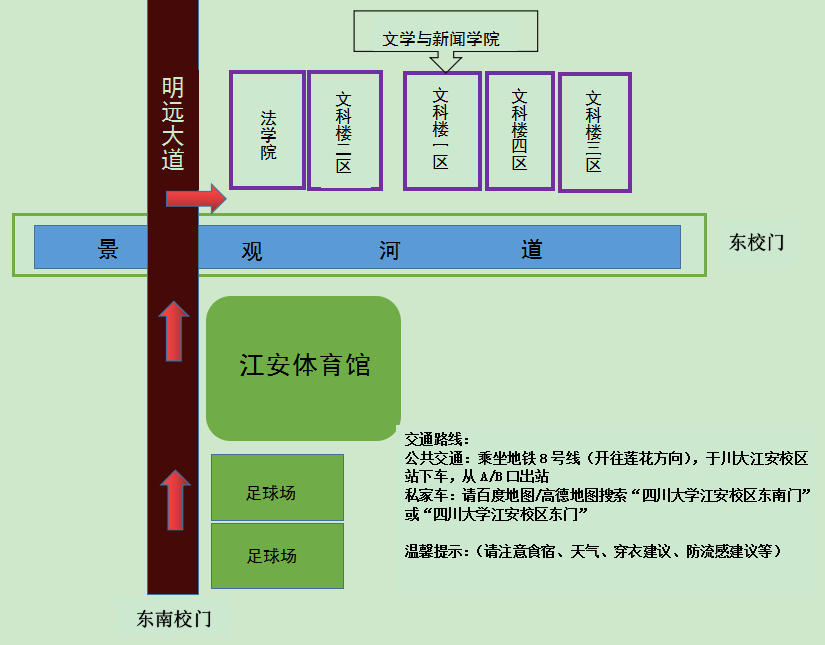 校外考生可乘坐成都地铁8号线在川大江安校区站下车,从A口或B口出站,到达a漫