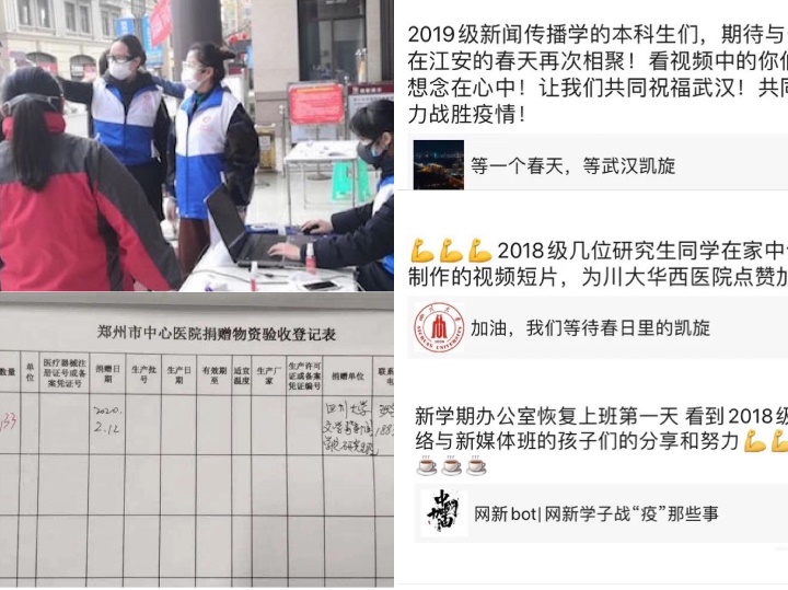 学院团委学生会、研究生会、2018级网络与新媒体本科专业、2019级本科同学以及2018级新闻与传播专业硕士同学自发组织起来,通过手写祝福、自制加油视频和专题推送等方式为爱助威,形成线上宣传合力;a漫