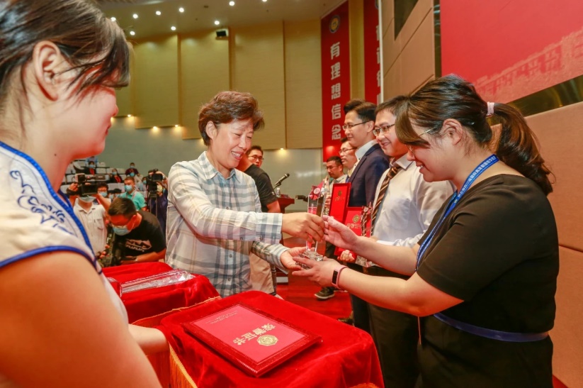 四川省总工会主席田向利为获奖教师颁奖