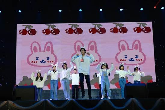 随后的月升、星繁两个篇章中,劲歌热舞继续,舞台剧《打工人穿越记》引得全场笑声不断,歌舞《维藏风》为舞台增添浓厚民族风情,话剧《芳华》触发过往回忆、激起青春憧憬。歌舞串烧《天线宝宝联盟》将现场气氛推向高潮。节目之外,在足球新生杯中夺冠的a漫