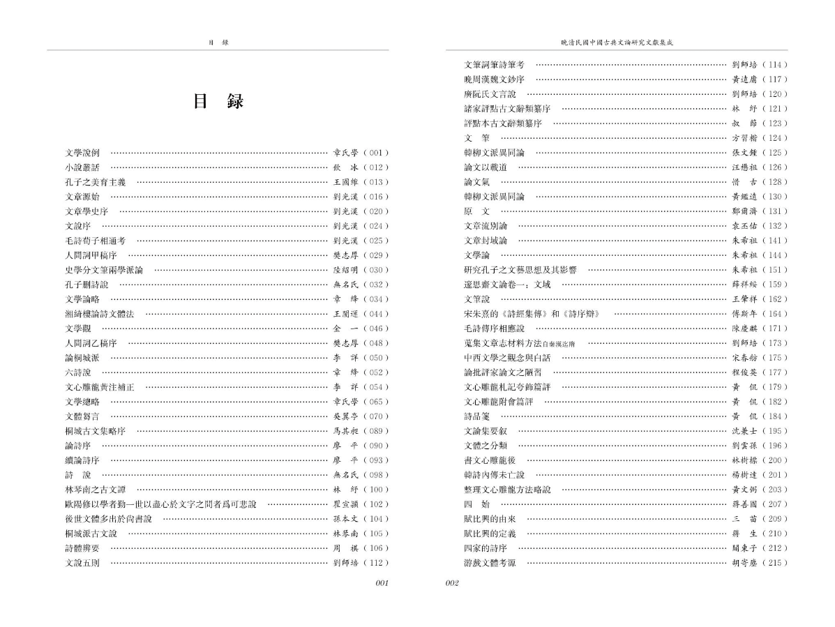 本文整理自《晚清民国中国古典文论研究文献集成》“前言”“凡例”“目录”“后记”。