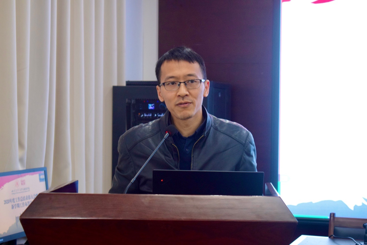 于江安文科楼一区526会议室召开2020年度工作总结表彰大会暨新学期工作布置会。会议分线上和线下同时进行,全院教职员工严格遵循常态化疫情防控各项措施参加会议。大会由a漫