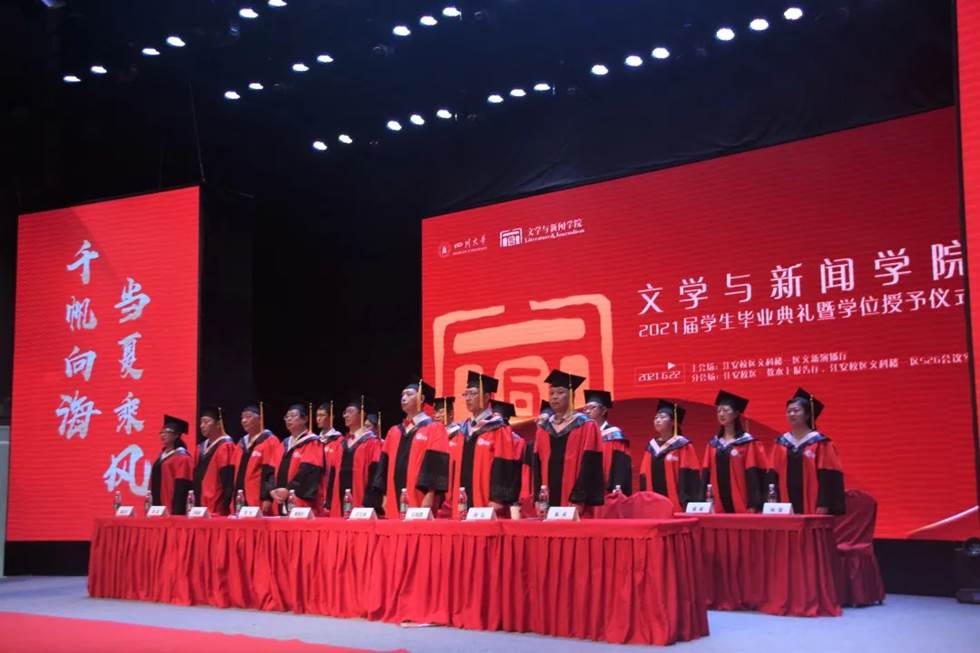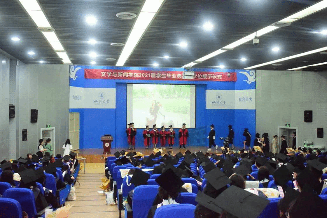 2021届学生毕业典礼暨学位授予仪式在江安校区文科楼一区文新演播厅主会场和江安校区水上报告厅、江安校区文科一区526会议室分会场同步举行。典礼和仪式同步举行线上直播,2021届毕业生亲友共同参与线上观礼。