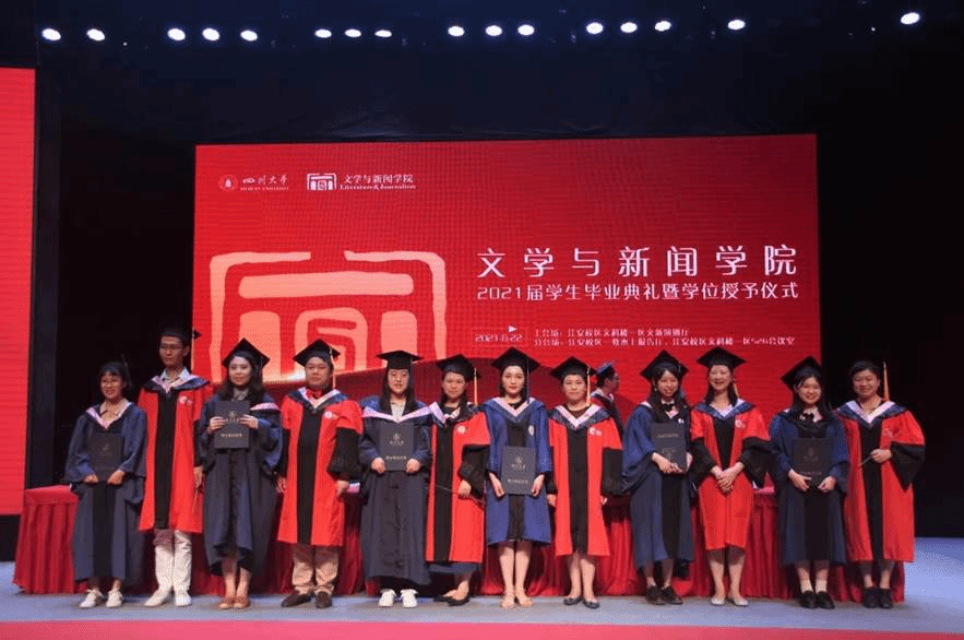 2021届学生毕业典礼暨学位授予仪式在与会师生的合影留念中落下帷幕。明远湖畔清波依旧,江安长桥倩影驻留,2021届全体毕业生在文新学院的求知旅途画上了圆满句号。我们期待着,你的胸怀里容纳下更多崭新的风景,a漫