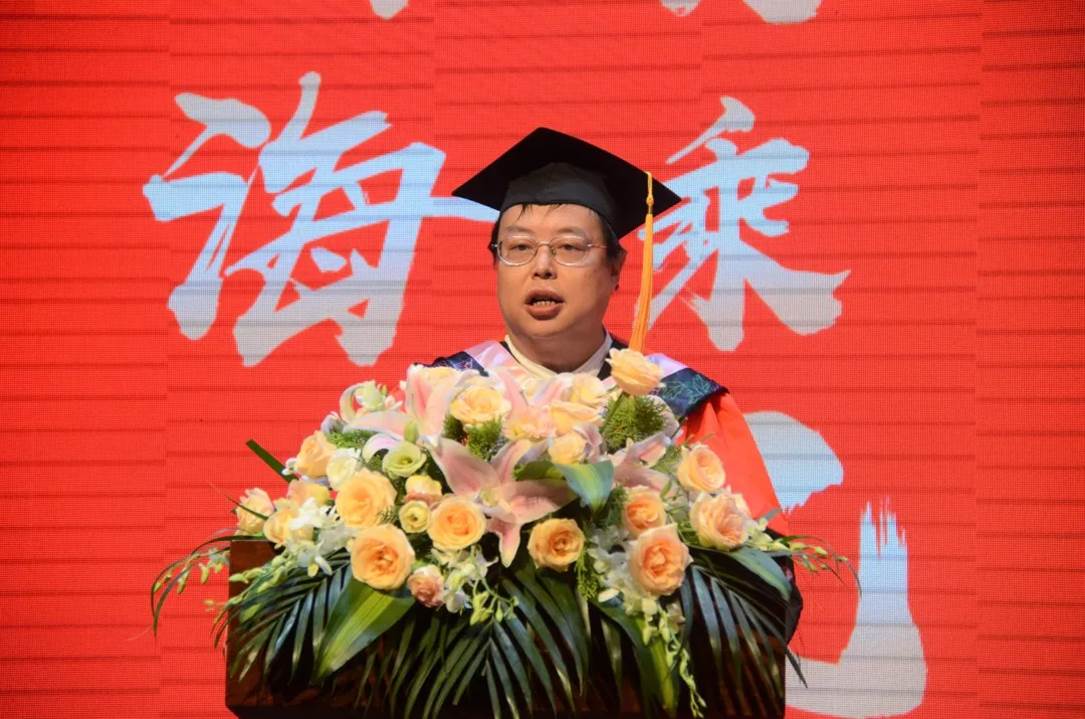 教师代表王炎龙教授向毕业生们表达祝贺,并向为同学们的成长付出辛勤汗水的老师、教职员工和家长们致以崇高的敬意和衷心的感谢。“在座的本、硕、博毕业生们,身着不同颜色的学位服,却镶嵌着一个共同的母校的名字——a漫