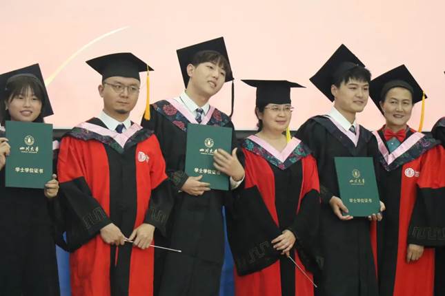 研究生毕业生代表2018级广播电视学专业薛奥同学说,硕士三年是滚烫青春中最沸腾的一段篇章,因为它带给我们学业能力和思想意志的多重考验,促使我们积极加强文化底蕴的积累沉淀,在疫情隔离中不断修炼自律严谨的治学态度。“少了本科时期的稚气,我们肩负着来自家庭和社会的期许,要成就一番作为。正是川大,赋予了我们这段青春以特殊的意义,让我们发自内心深爱这个地方。让我们把在下一站的光芒,作为献给母校一百二十五周岁生日最好的贺礼。”