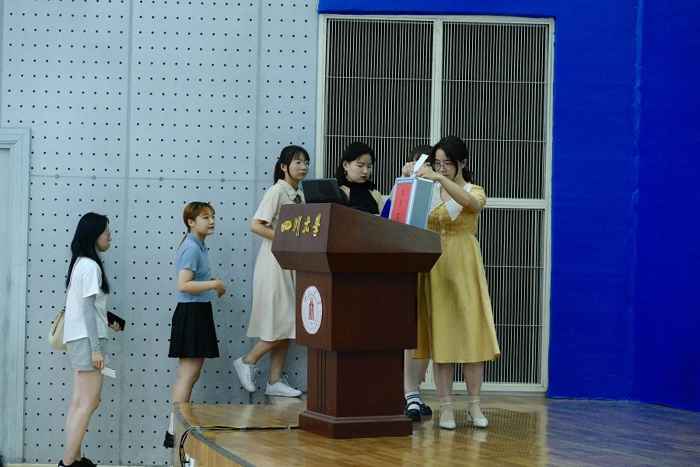 全体学生代表通过无记名投票方式进行民主选举,经统计产生了学院2020-2021届学生会主席团。其中,张小艾当选为学生会主席,谷明珊、康雨晨当选为学生会副主席。