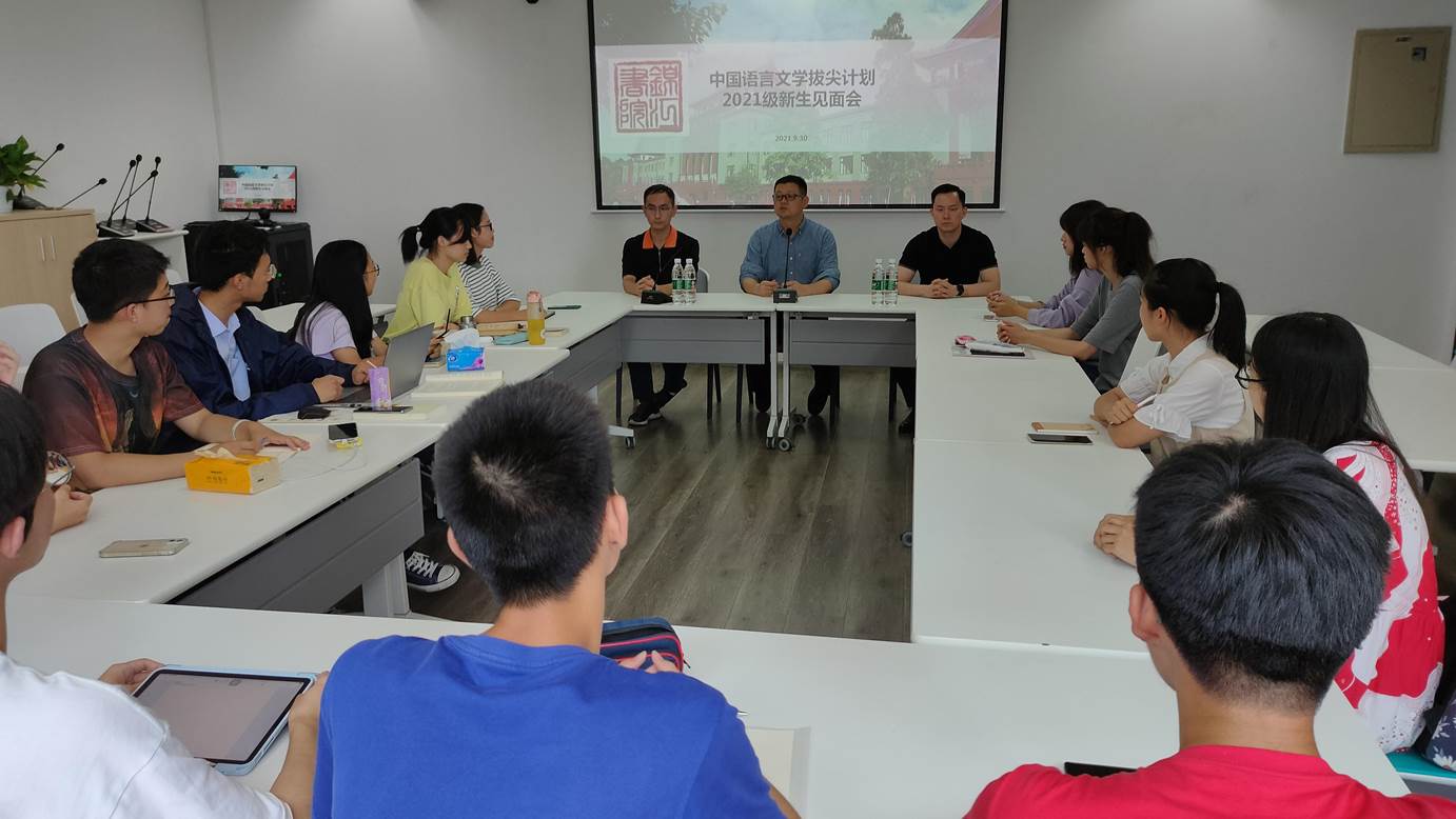 于文科楼一区锦江书院举行中国语言文学拔尖计划2021级新生见面会。中国语言文学拔尖计划执行主任、a漫