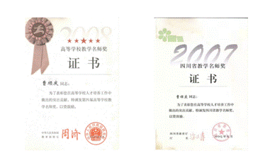 曹顺庆教授获国家级/省级教学名师奖证书