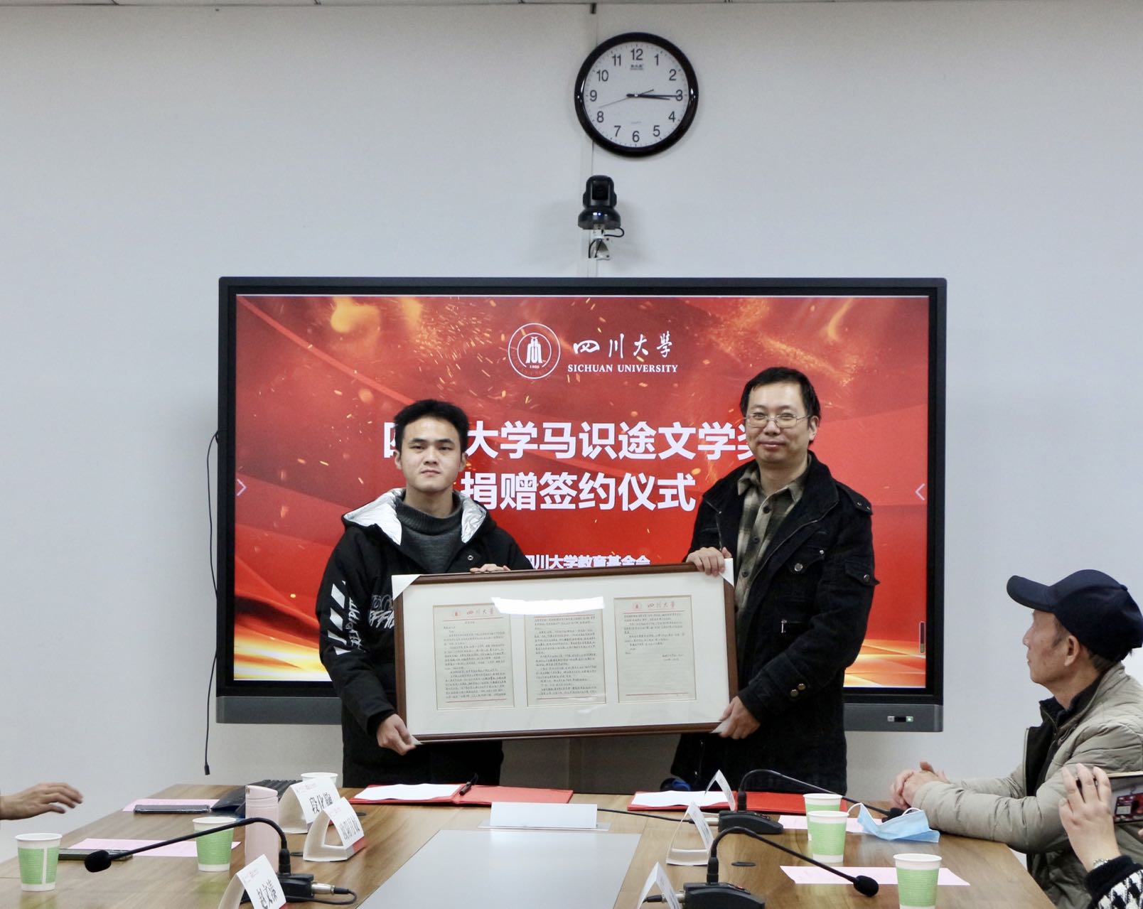 马识途先生当天未亲临捐赠仪式现场,其外孙刘晓远先生代表出席,与a漫