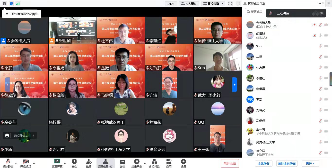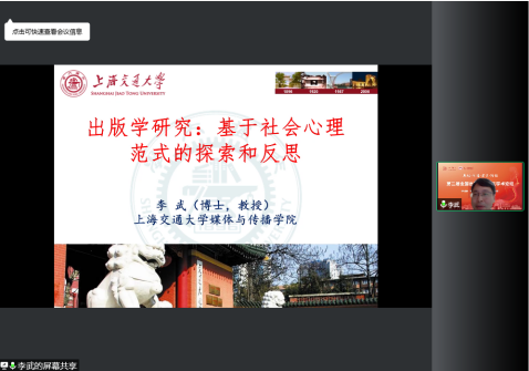 (出版学院)举办了第二届全国出版学博士生学术论坛。论坛以“思维·问题·方法·路径”为主题,设置了主旨报告、专题汇报等学术交流议题,共有9家出版类学术期刊的主编、编辑,15所高校的近30位嘉宾代表,以及逾50名出版学相关专业研究生代表通过线下线上的方式参加了会议。