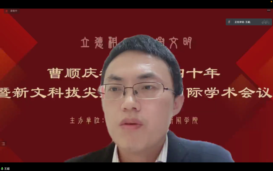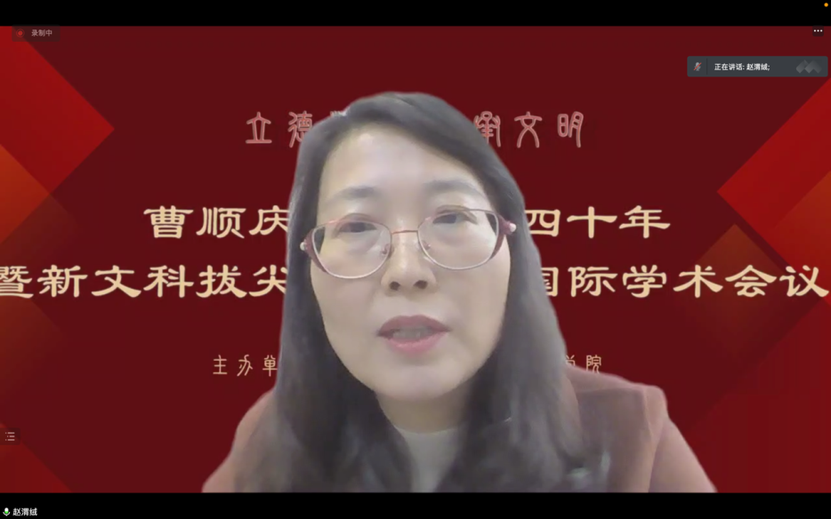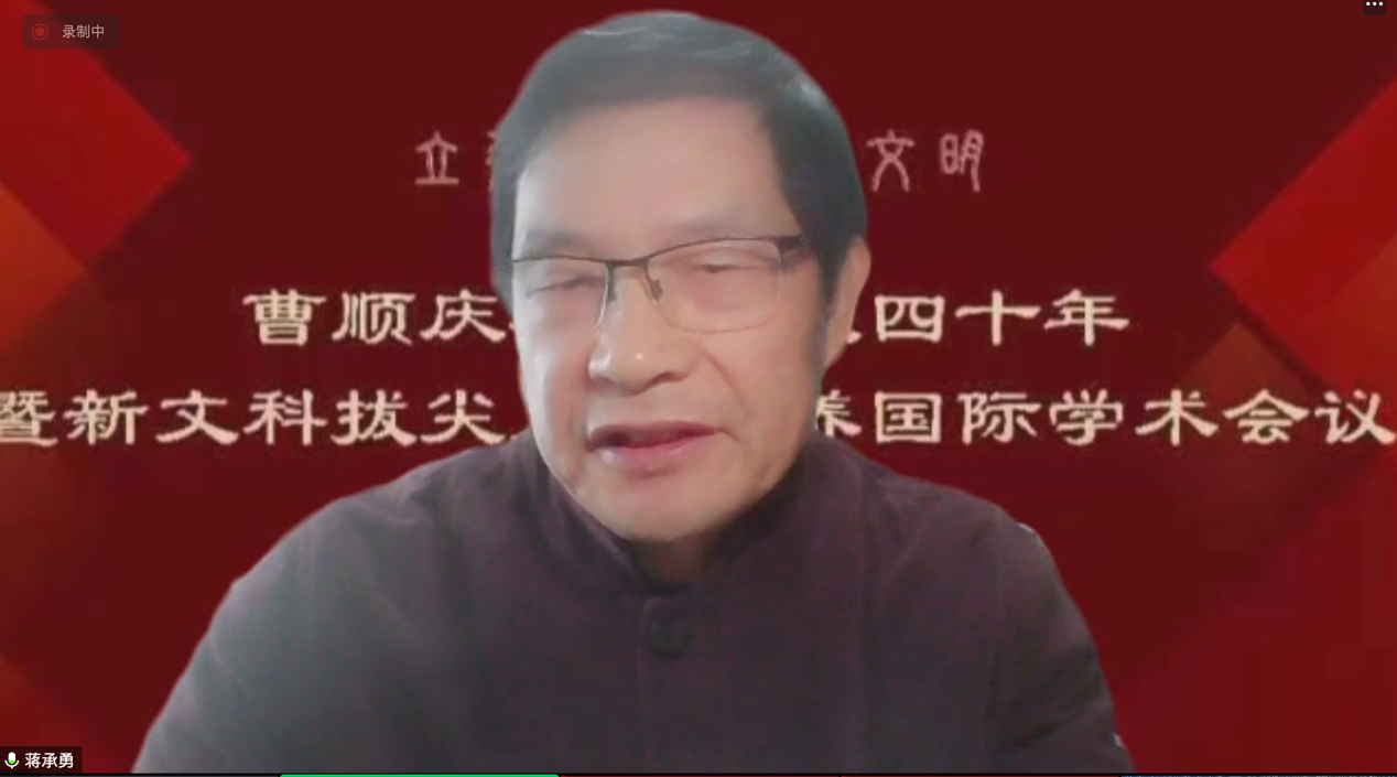 院长李怡教授在视频致辞中表示,曹顺庆教授从教四十年来为学院的成长壮大及学科的蓬勃发展做出了重要贡献。他提出不论是为师、为学、为文还是培养拔尖人才,“立德树人 传承文明”是基本原则,这一主题应成为学院未来发展的旨归,同时更应成为一代代年轻学者自觉追求的目标。
