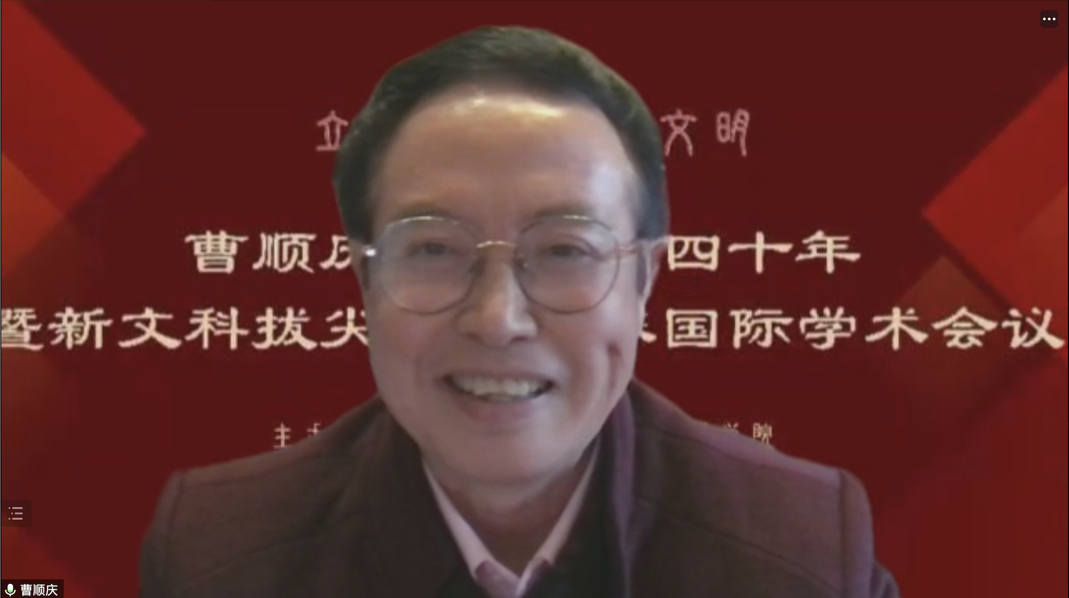 复旦大学文科资深教授陈尚君在致辞中回忆了与曹顺庆教授在复旦大学的学习经历,赞扬曹顺庆教授钻研探索的学术精神,指出曹顺庆教授是当代难能可贵的杰出教授,对中国学术、中西文化的交流发展做出了重要贡献。