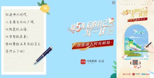 川观新闻报送的主题活动“给五年后的自己写一封信”是2022年3月出品的大型融媒活动,活动邀请全国各行各业的网友写下一份与未来的约定,期间共收到上万封信件,其中既有个体命运与蓬勃时代的交集,也有未来期望与时代奋进的展望。该主题活动突出个体小梦想与时代大变化的交融,在一个个小故事中书写中国奋斗的精神力量。