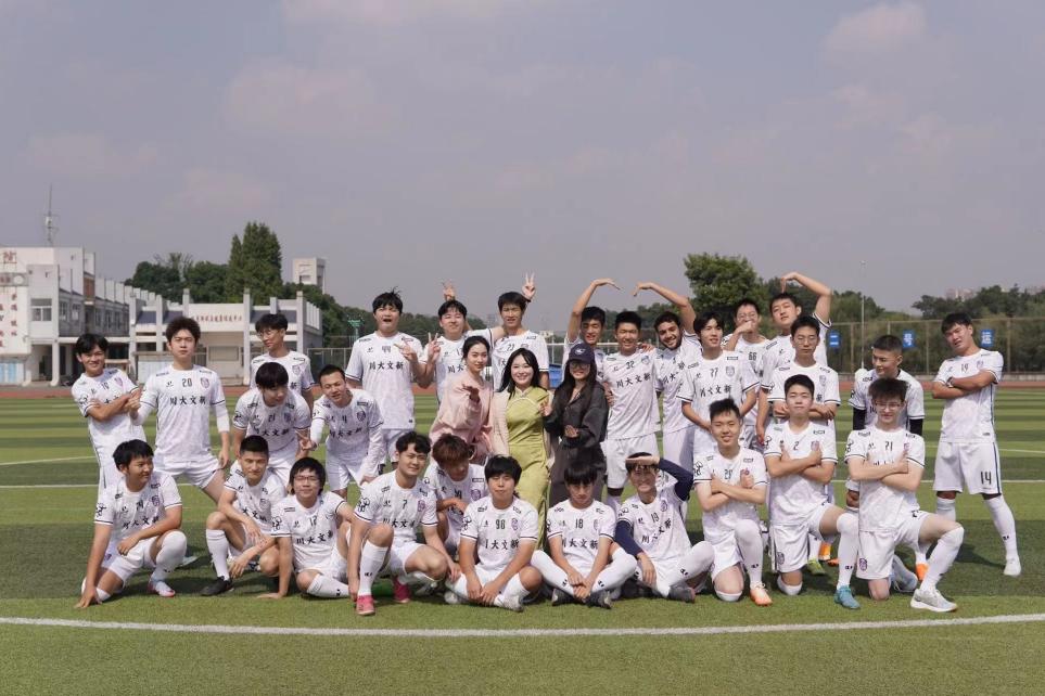 足球诗人贺炜在解说时提到罗曼•罗兰说过的一句话:“这个世界上只有一种真正的英雄主义,那就是认清生活的真相并且仍然热爱它。”在球场之外,文新队员们也是一群热爱生活的川大学子。在22级文新球员所在的4舍,经常能看到他们相互“串门”:跑到队友宿舍打游戏,一起在客厅看球,借着下楼洗衣服的机会打个招呼,顺便聊会天。而在专业学习过程中,他们一起组成课程的学习小组共同进步,在今年的大创项目申报中,卢龙阳和包都乐两位队员还将自己的所学专业与足球知识相结合,与其他成员一起申报了贵州“村超”足球联赛的新媒体传播研究项目。球场上他们是一起拼搏的队友,球场外他们是共同生活的朋友,一起学习的同学。