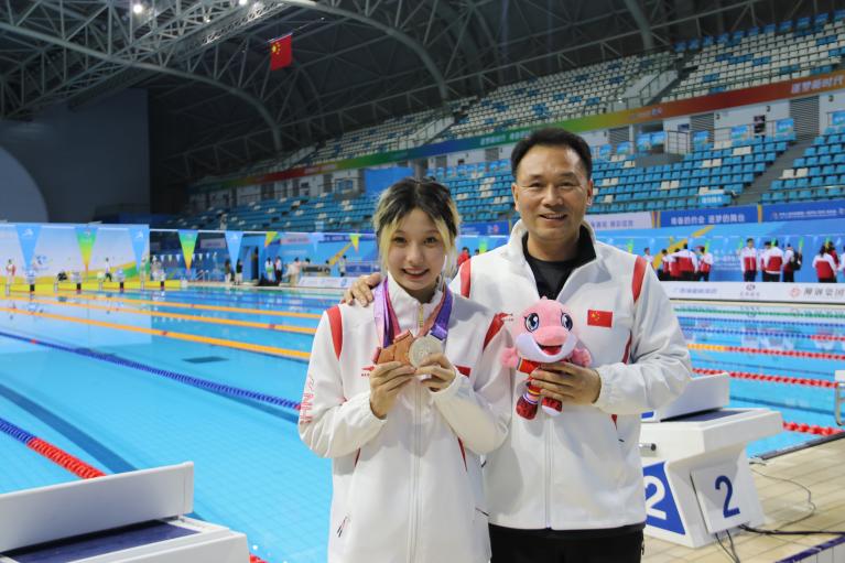 自2021年开始,学校设立“高水平游泳队夺冠计划”项目,持续为游泳队的训练和比赛提供支持,为游泳队提供强大助力。游泳队内部氛围融洽,徐若寒与队友们保持着亲密的关系。备赛过程中压力难免存在,面对这种“力不从心的感觉”,她会选择听歌放松,但她更喜欢和队友们一起city walk、去KTV唱歌,队友之间也经常聊天谈心、相互鼓励,安抚彼此的情绪。和教练谈心也是缓解压力的好方式,除了鼓励加油,教练还会对她进行科学的指导,以放松心情。