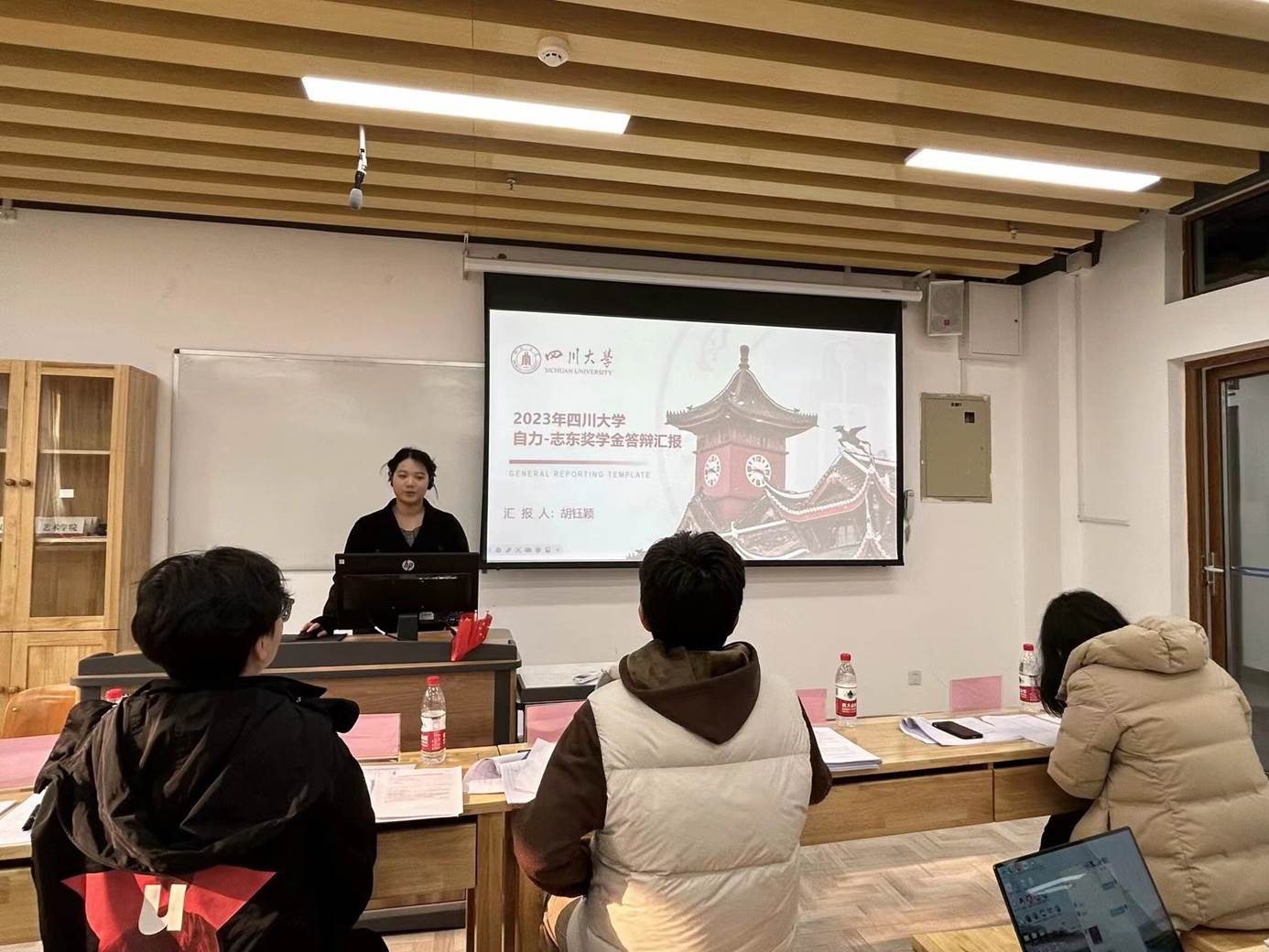 在江安校区文科楼一区118教室举行了2023年“自力-志东奖学金”答辩评审会。a漫