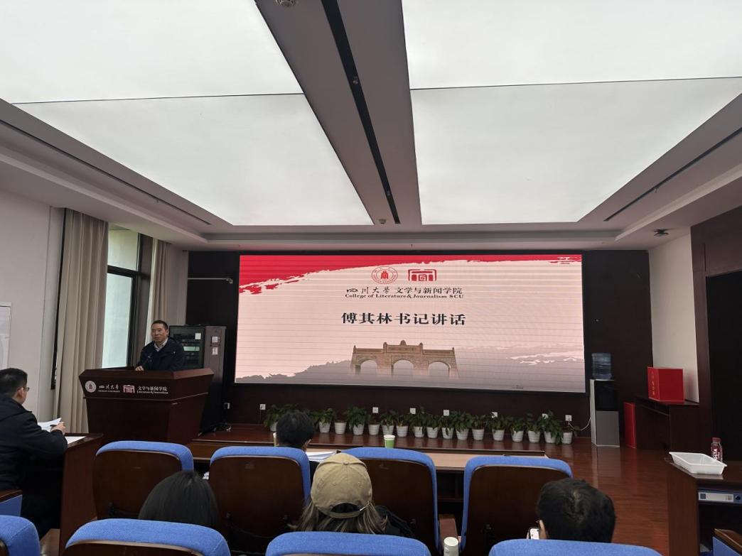 傅其林书记在总结发言中号召,全体师生深入解读了党的二十届三中全会的核心要义和丰富内涵,落实全会关于统筹推进“教育”“科技”“人才”三位一体的改革部署要求,立足学校高质量发展30条及“1+5”文件精神,落实立德树人根本任务,扎实推进学院各项工作稳步前进,为教育强国贡献文新力量。