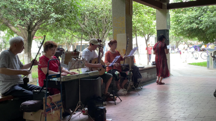 社区居民合奏民乐团在排练