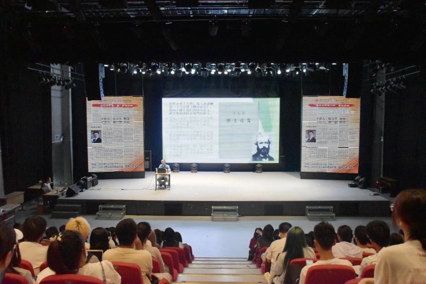 江安校区文科楼一区负一楼演播厅,为学院2024级新生作了题为“怎样学习新闻传播学”的主题讲座。讲座由a漫