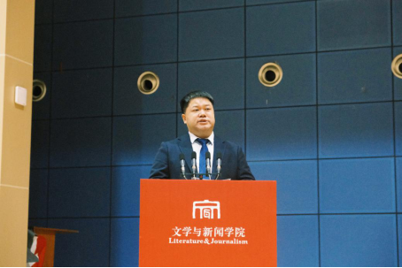 典礼在庄严神圣的国歌声中拉开序幕。院长罗鹭教授首先代表学院向2025级全体新生表示热烈欢迎。他从川大文新人的百年精神烙印谈起,回顾学院办学历程中承载的厚重历史和现实关怀,鼓励同学们既要追求诗意与远方,也要承担责任与担当。他在讲话中勉励同学们立志要早,继承先辈的报国之志;立身要正,肩负强烈的社会责任感和使命感;立学要勤,在笔耕不辍中收获丰收的喜悦;立言要谨,让不朽的言论与学说流传后世,做顶天立地的文新人。