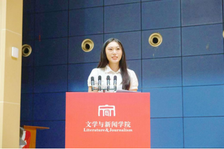 在校学生代表2022级新闻学专业本科生陈柳伊同学发言