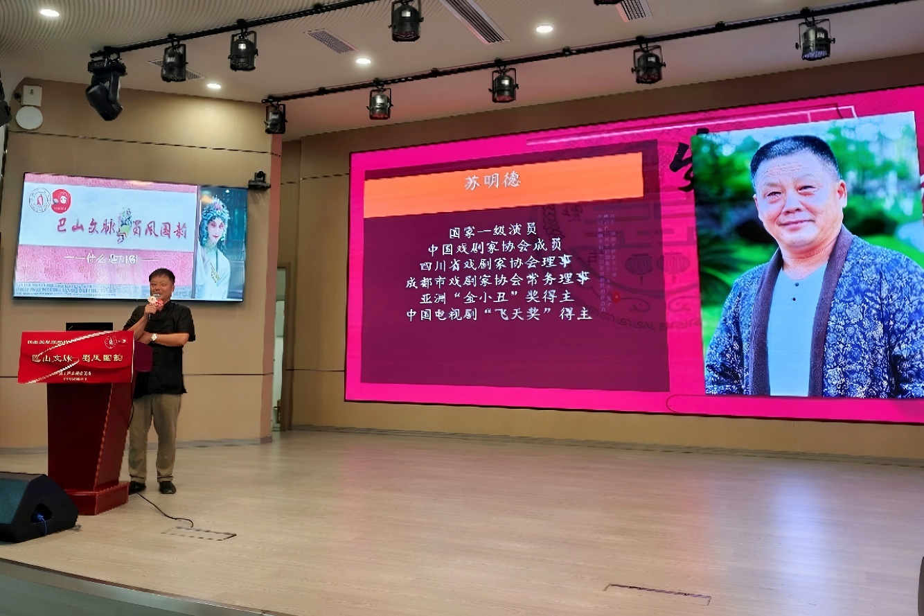 望江校区科技创新中心演播厅顺利举办。国家一级演员、中国戏剧家协会成员、四川省戏剧家协会理事、亚洲“金小丑”奖得主、中国电视剧“飞天奖”得主苏明德应邀讲解川剧,a漫