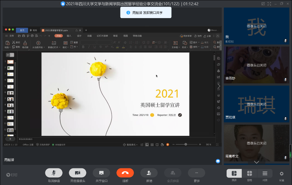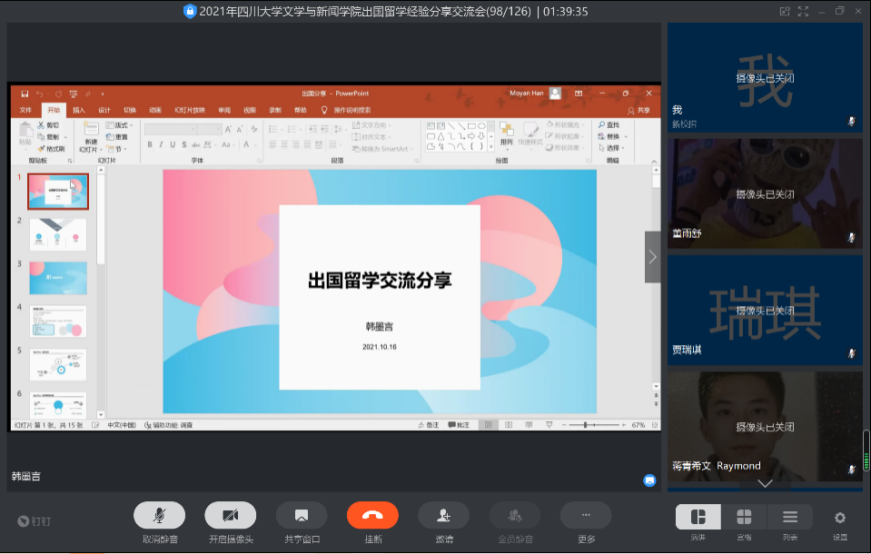 主办的本科生出国留学经验分享交流会于钉钉会议平台线上召开。与会嘉宾有a漫