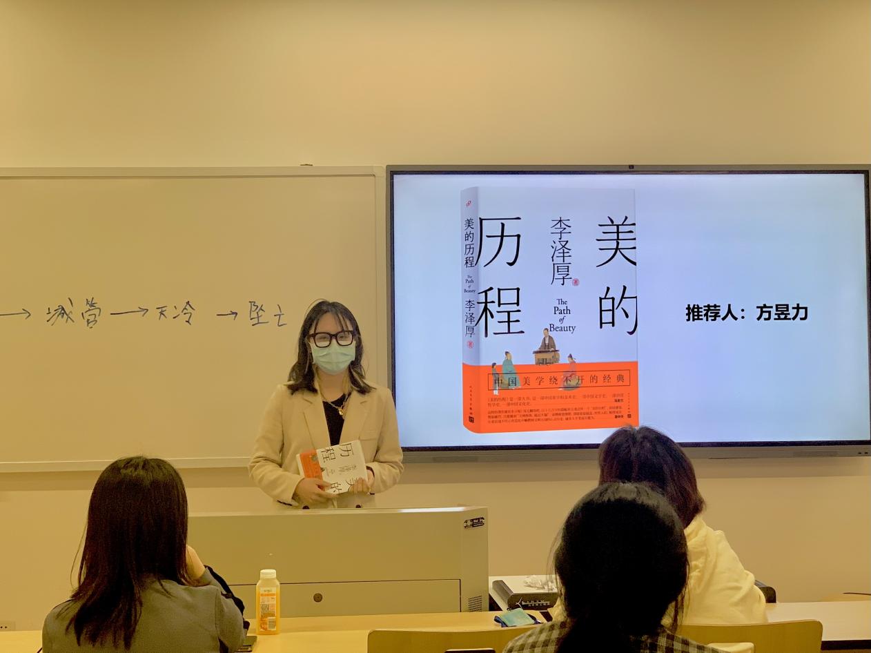 组织生活会的第四部分“悦读盲盒”是图书交流和互换活动,在此之前每位党员都已选择好自己所推荐的图书,在活动中依次分享了自己选择的理由。此次推荐的书籍种类广泛,方昱力同志推荐的是李泽厚的《美的历程》,她认为有关如何建构我国美学的答案可以从此书中略有窥见,阅读此书可以获得对中国美学的整体了解,感受李泽厚先生深厚的文字功底,也有助于文学素养的提升。胡燕同志推荐了埃弗雷特·罗杰斯的《创新的扩散》,并分享“联系阅读”的方法,即在阅读前获得对该书背景及其作者的全面了解,形成体系,从而把书读活。从柴静的《看见》出发,陈星同志结合所学专业,表达了我们不应被新闻报道的框架局限的看法。唐静仪同志推荐的是《我们仨》,她认为该书简洁而有力,朴实无华而充满着温情,她希望各位同志能够在杨绛的文字中体会面对人生温柔、乐观与坚韧的力量。