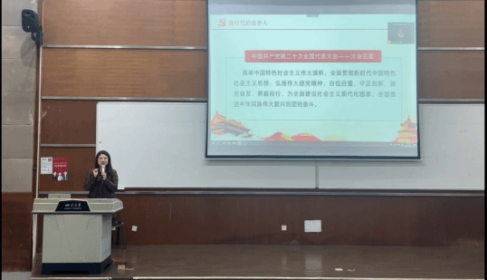 2022级硕士研究生辅导员郑格老师主讲,围绕新时代中国取得的辉煌成就、面对的使命任务、实施的战略路线,讲述时代楷模与身边榜样的故事等内容,鼓舞硕士新生既怀抱梦想又脚踏实地,既敢想敢为又善作善成,努力成为有理想、敢担当、能吃苦、肯奋斗的新时代追梦人。