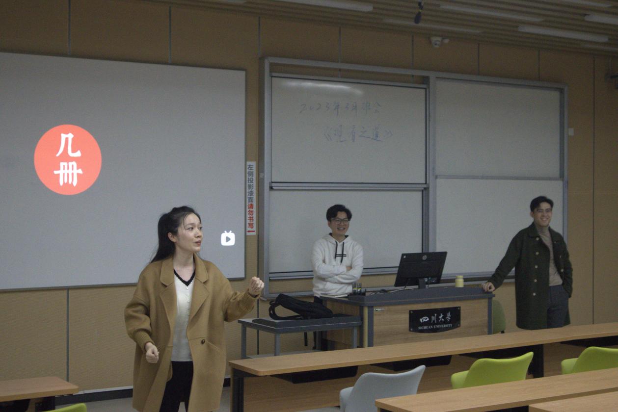 2022级新闻传播学本科0302小班、0301小班以及0402小班在江安校区综合楼C座103教室联合举办2023年班主任见面会暨3月例行班会。本次班会由三位兼职小班班主任骆世查、王陌潇、赵心竹老师联合组织,选择赏析一集时长适中的专题纪录片《观看之道》,并随后开展讨论会和问答互动。活动于一个月前筹划安排,三位老师及三个小班的同学准时参加。