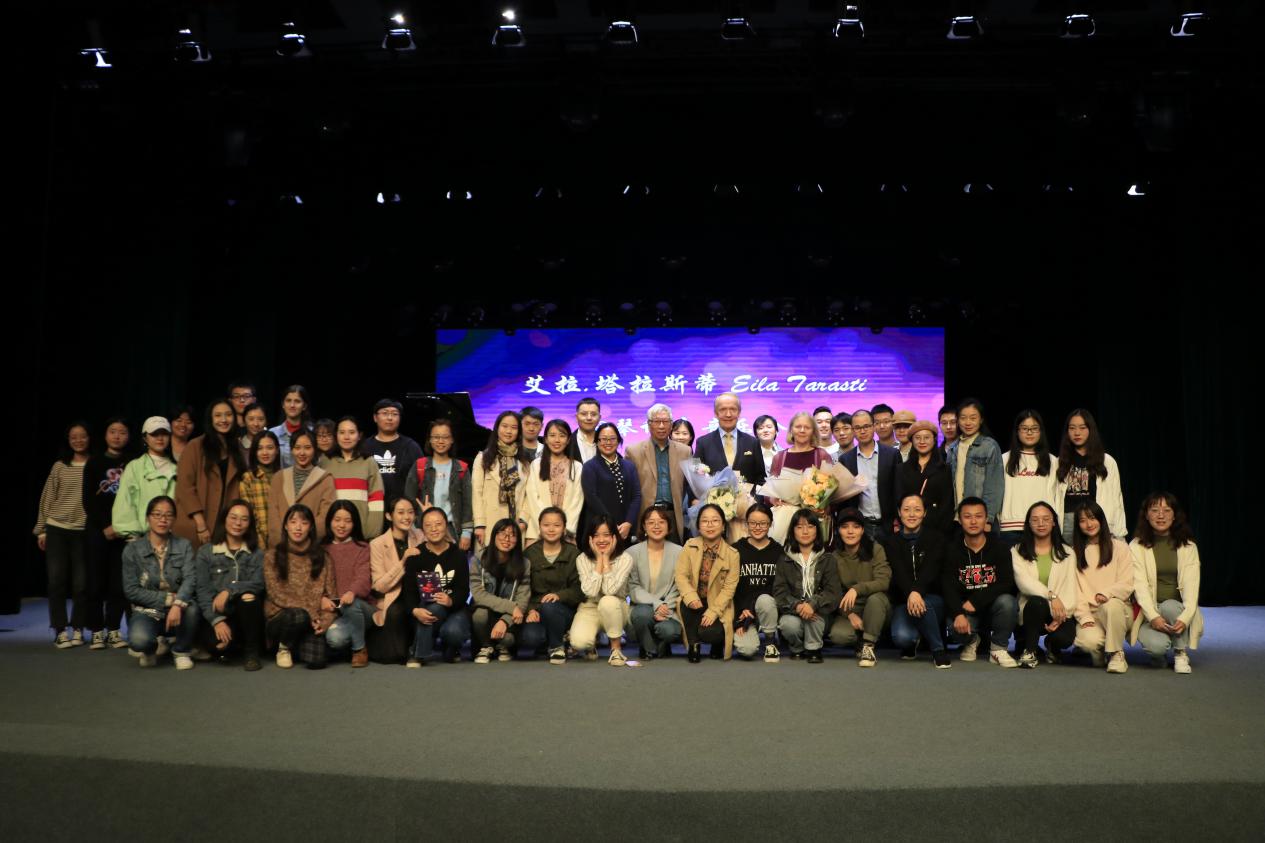六首曲目演奏完毕,全场师生为塔拉斯蒂教授献上热烈掌声,塔拉斯蒂教授夫妇此次访问a漫