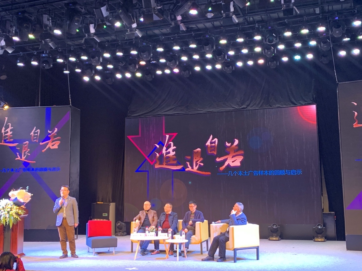 彭虹副教授做了“进退自若——几个本土广告样本的回顾和启示”主题演讲。作为一个从理工科转行做了25年广告实践和课堂教学的广告人,彭虹副教授用五粮液、四川中烟等众多本土广告案例,讲述了一场中国广告“变迁史”。众多徜徉于广告江湖数年的甲方代表和其多年的合作伙伴,包括四川中烟张建伟先生、五粮液高红川先生、电影《哪吒》制片人刘文章先生等出席了会议,在杨效宏老师的主持下,与彭虹副教授就中国广告的历史与发展做了对谈,并与在场的师生展开交流。