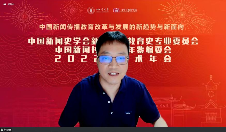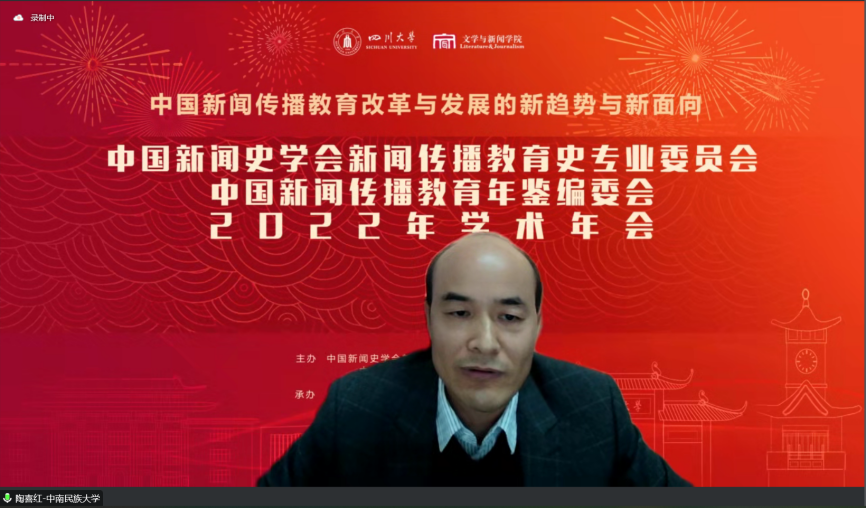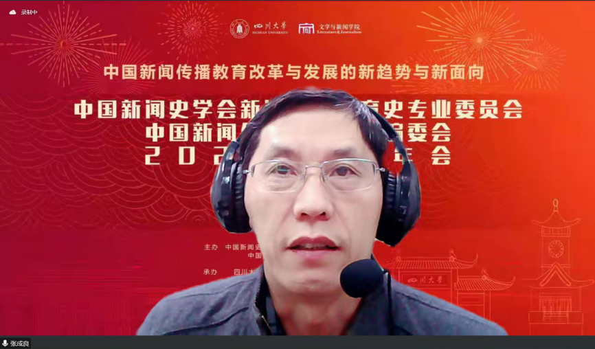 2022年11月12日,中国新闻史学会新闻传播教育史专业委员会、中国新闻传播教育年鉴编委会2022年学术年会顺利举办。下午,学术年会主题论坛之“院长论坛一:新闻传播教育改革发展的新趋势”在线召开。此次论坛由a漫