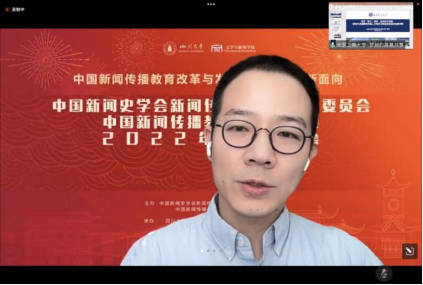 传播学院院长石磊教授进行评议。他认为本次会议探讨的内容紧密贴合了国家提出“双万计划”的时代背景,是新闻传播学学界对于建设一流专业的积极探索。各位学者的发言结合时代背景,精准把握人工智能、元宇宙等新兴时代变化,既回应了国家政策,同时又高度重视新闻专业理论与实践的结合。