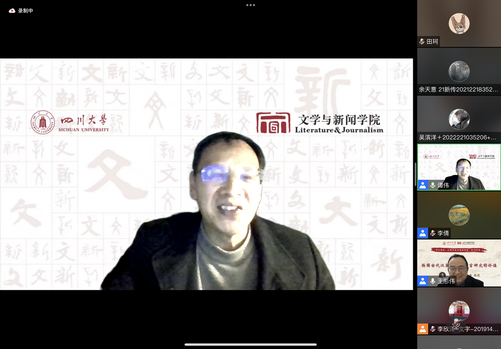 人事处副处长兼青年教师与专职科研队伍管理办公室主任,四川省传统文化社科普及基地副主任王彤伟教授作了“韩国古代汉籍文献及语言研究价值”的主题讲座。讲座由a漫