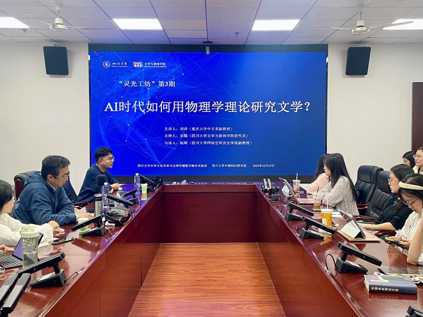 江安校区文科楼一区418会议室做了题为“AI时代如何用物理学理论研究文学?”的精彩讲座。讲座由a漫
