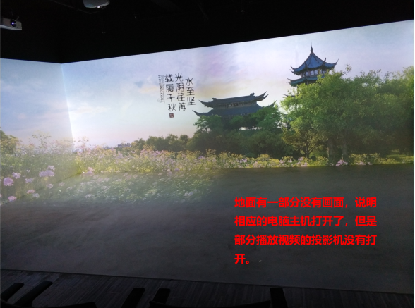 解决方法:使用投影机(播放视频)遥控器打开相应的投影机;如果还是没有正常开机,将配电箱电闸关掉再打开,再按照顺序打开所有设备。